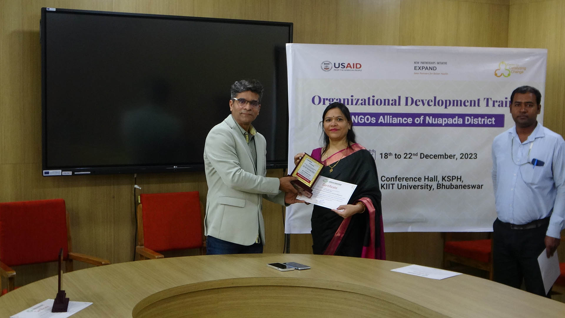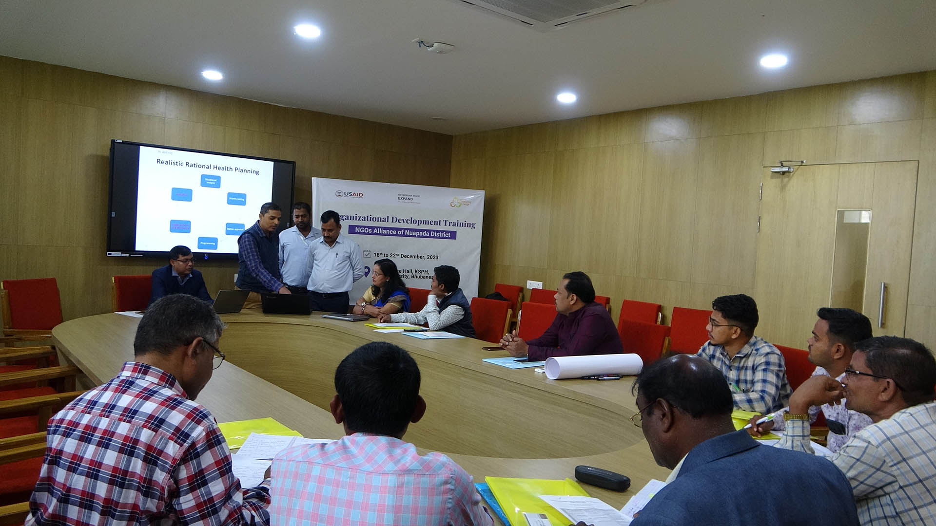 The KIIT School of Public Health (KSPH) organized a five-day workshop titled “Organization Development Training Program for NGOs under NPI-EXPAND Project” from December 18th to 22nd 2023, in collaboration with the Centre for Catalyzing Change (C3), India. The primary objective of the workshop was to enhance the organizational development, proposal development, governance, monitoring, reporting, and documentation capacities of the participating NGOs. The workshop was attended by representatives from 10 district level NGOs operating in various sectors such as health, education, environment, agriculture, and social justice in Nuapada district of Odisha.