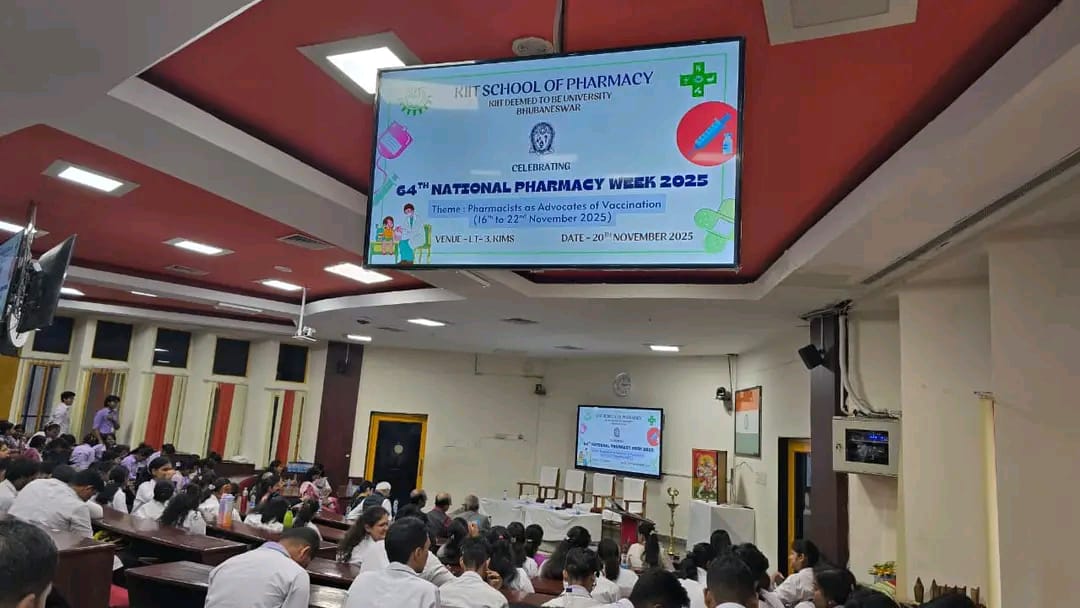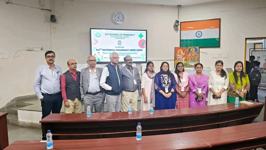 On 20th November 2025, the KIIT School of Pharmacy (KSOP), Bhubaneswar celebrated the 64thNational Pharmacy Week with the theme “Pharmacists as Advocates of Vaccination”. The inaugural event brought together faculty members, students and invited guests, highlighting the vital role of pharmacists in public health and vaccine awareness. The programme commenced with an opening address by Dr. Biswaranjan Behera, Principal, KIIT School of Pharmacy emphasizing the importance of rational pharmacy practice, followed by our Chief Guest Dr. ManasRajan Behera, Medical Superintendent, KIMS and Chief Speaker Dr.SonaliKar, HOD, Community Medicine, KIMS, Bhubaneswar focusing on the role of pharmacist in child and adult vaccination advocacy and community pharmacy practices. The celebration created an engaging academic environment, inspiring students to uphold professional ethics and contribute meaningfully to healthcare delivery. The event strengthened KIIT School of Pharmacy’s commitment to nurture competent, socially responsible pharmacy professionals while strengthening awareness on vaccination and safe medicine practice.