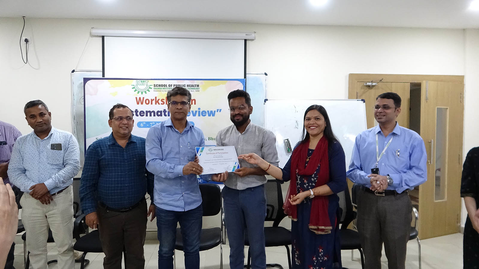 Faculty members from KSPH, including Prof. (Dr.) Bhuputra Panda (Director), Dr. Pratap Kumar Jena (Assoc. Professor), Mr. Saumya Ranjan Pani (Faculty Associate), and Ms. Nishisipa Panda (PhD Scholar) conducted sessions on various aspects of Systematic Review. Dr. Krushna Chandra Sahoo (Public Health Specialist) and Dr. Abhinav Sinha (Research Officer) joined all throughout as external experts from ICMR-RMRC, Bhubaneswar. Master’s students from KSPH and Dental School, and PhD Scholars from Management School participated.