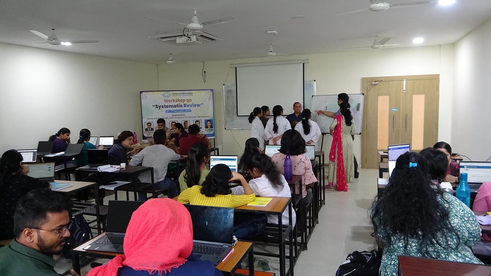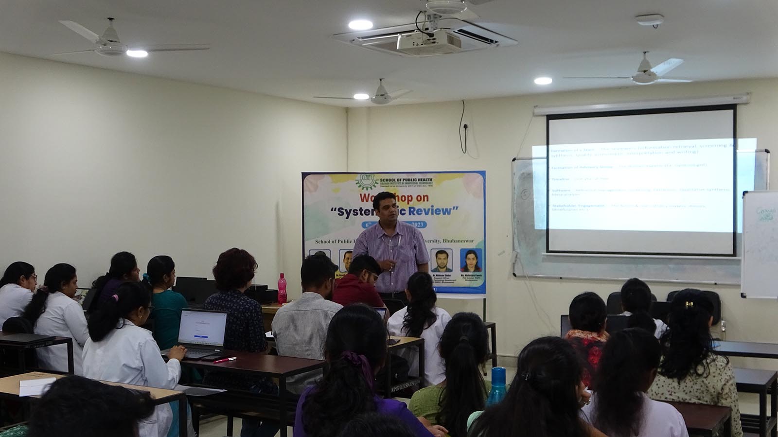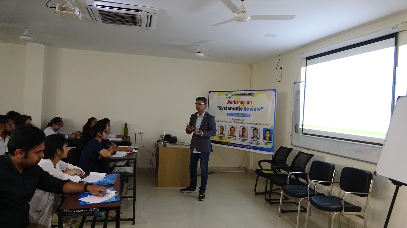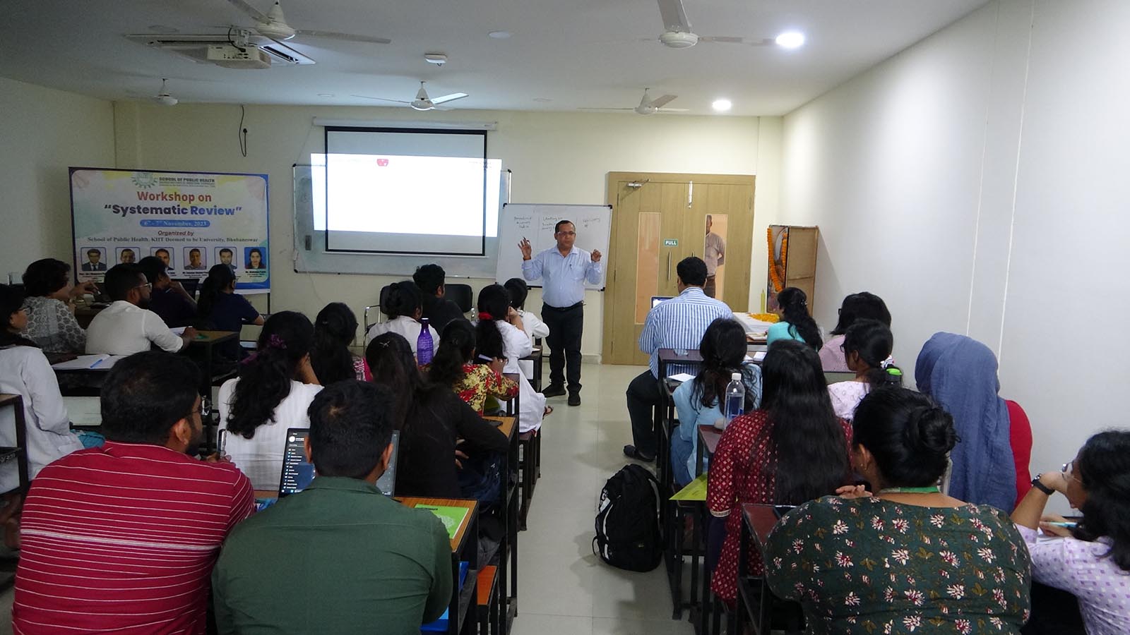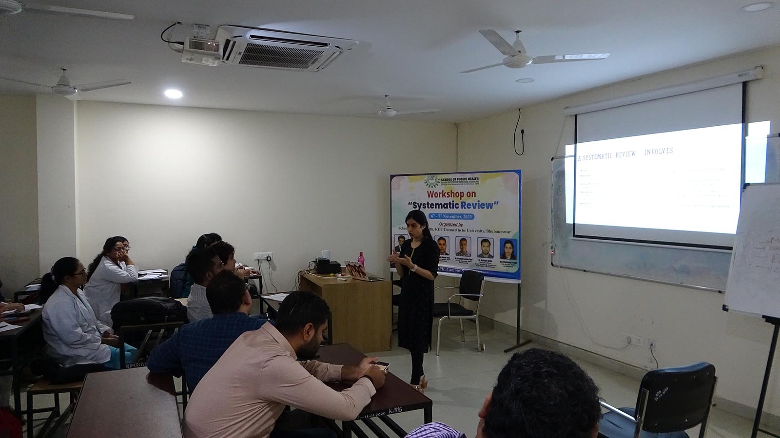 The KIIT School of Public Health conducted a two-day workshop on “Systematic Review” on 6th and 7th November, 2023. The purpose of the workshop was to equip students with the necessary knowledge and skills to conduct a systematic review on topics of their choice pertaining to health and social issues. The workshop covered various aspects of conducting a systematic review, including identifying research questions, refining review questions, establishing inclusion and exclusion criteria, searching and screening relevant databases, assessing the quality and bias of included studies, extracting and synthesizing data, and writing findings according to PRISMA guidelines. The workshop included lectures, demonstrations, group discussions, and hands-on exercises.